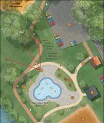 The park already includes washrooms, playgrounds, trails, seating, shade, parking, and nearby recreation facilities—critical amenities that support safe and comfortable splash pad use.